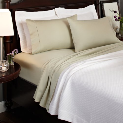 Top the bed with a coverlet that has substantial weight for warmth, as well as a subtle, sophisticated beauty. Pinzon's Diamond Matelasse coverlet is made of 50 percent cotton and 50 percent polypropylene, so it has a slight stretch for comfortable movement. Offered in a choice of colors and sizes, the coverlet accessorizes easily and helps to outfit any bedroom in the house. Matching Diamond Matelasse shams are available for a full, accessorized look. The Full/Queen size coverlet measures 92 by 90 inches. To preserve the coverlet's beauty, dry clean only for care.