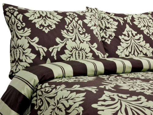 Regency Collection Havana Floral/Stripe Full/Queen Size Cotton Sateen 3-Piece Reversible Duvet/Sham Set-One of the easiest ways to freshen up and improve the look and feel of your bedroom is to add a new duvet set to your bed. Two duvets in one, is the best way to describe this unique and wonderful set. Floral print design on one side and stripe print design on the other lets you flip the duvet over for a fresh, new pattern to fit your individual decorating style. The duvet and shams are woven from amazingly soft single-ply 300 thread-count 100-Piece cotton sateen that has been calendared and mercerized. The benefit to you is a duvet and shams that have a beautiful sheen, higher luster, increased durability and are smoother to the touch. This full/queen size set includes a 90 by 90-Inch duvet cover and two standard size 20 by 26-Inch shams. A button closure is added to the bottom edge of the duvet to keep comforter secure and hidden while the shams have convenient envelope closure. Machine wash cold; Tumble dry low.